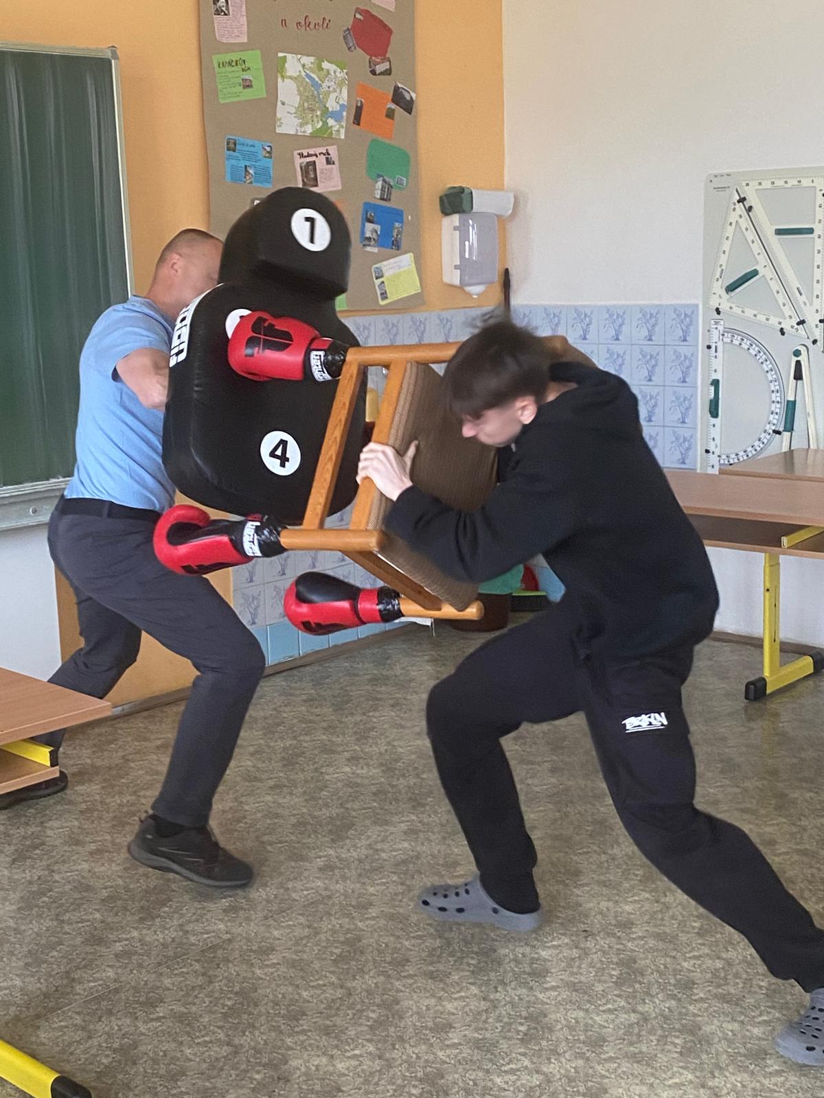 nejprve nástroj, poté reakce bez nástroje a nakonec opakování a upevnění. Cílem není naučit bojovat, ale získat klid, orientaci a schopnost reagovat v reálných situacích.